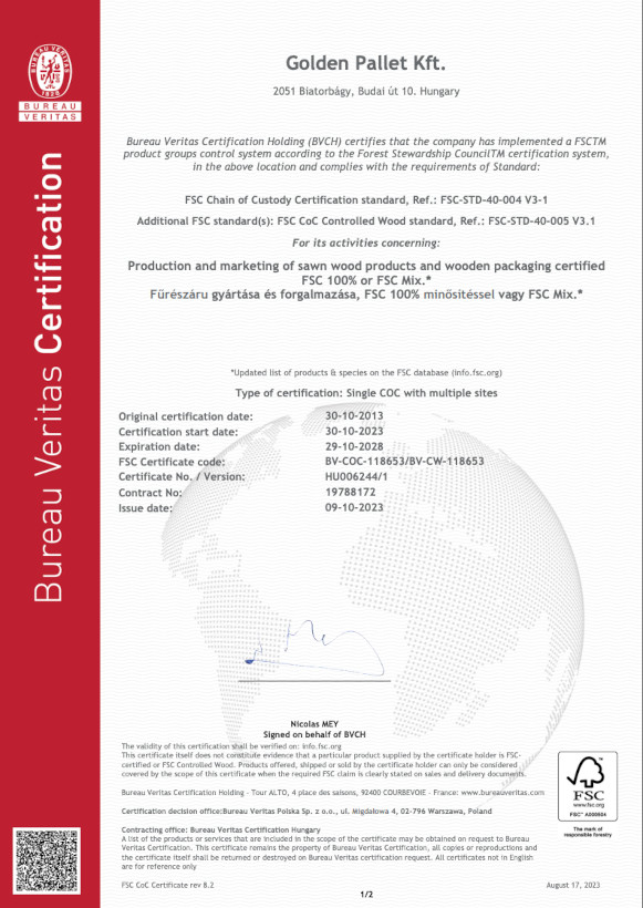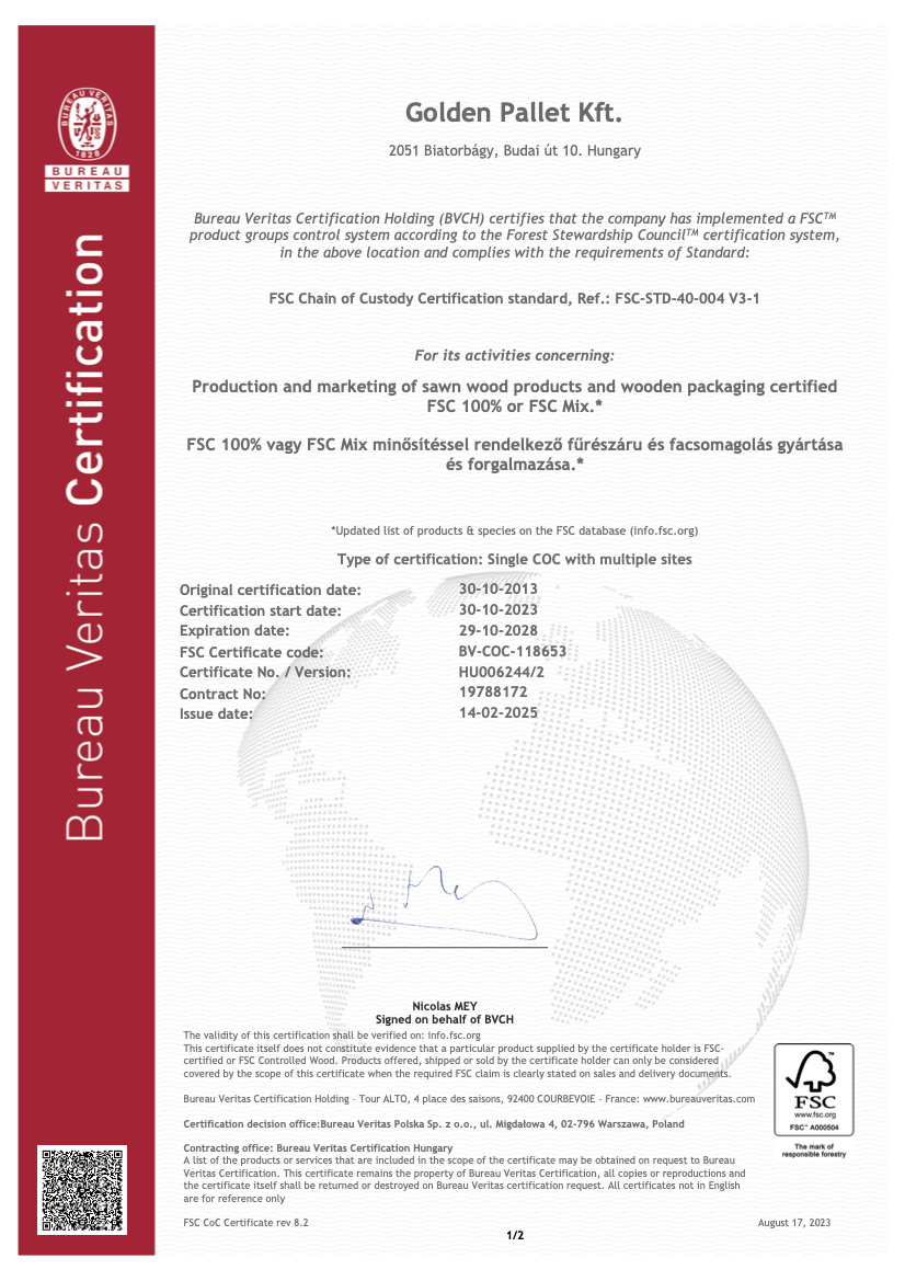 FSC-C118653 tanúsítvány elérhetősége: https://search.fsc.org/en/certificate/a024000000HkRsfAAF/